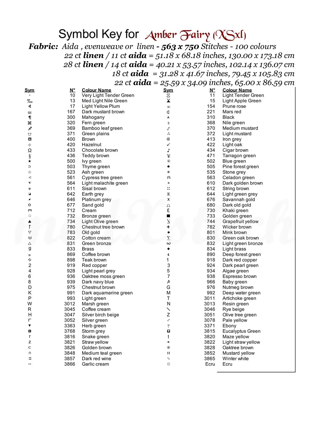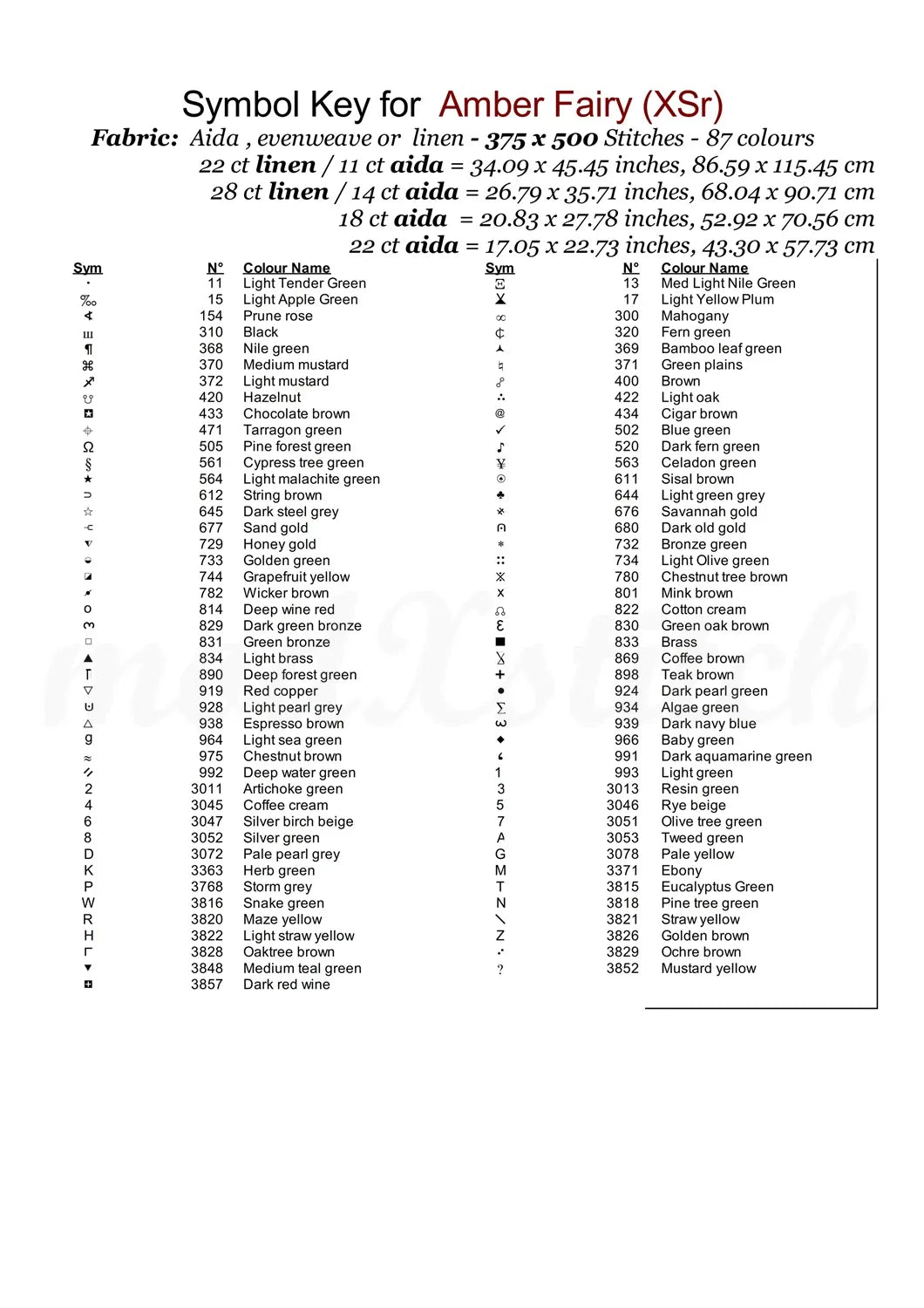 …Thread shopping list for all aida sizes stated