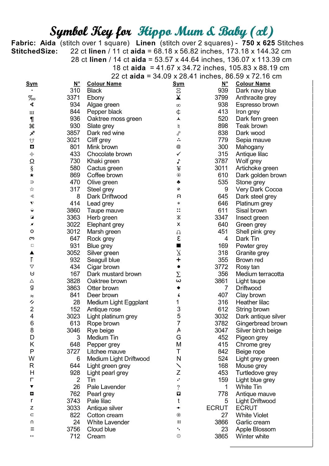 …Thread shopping list for all aida sizes stated