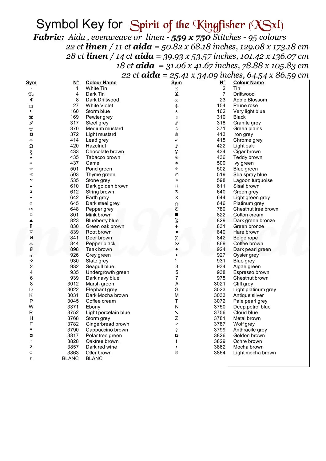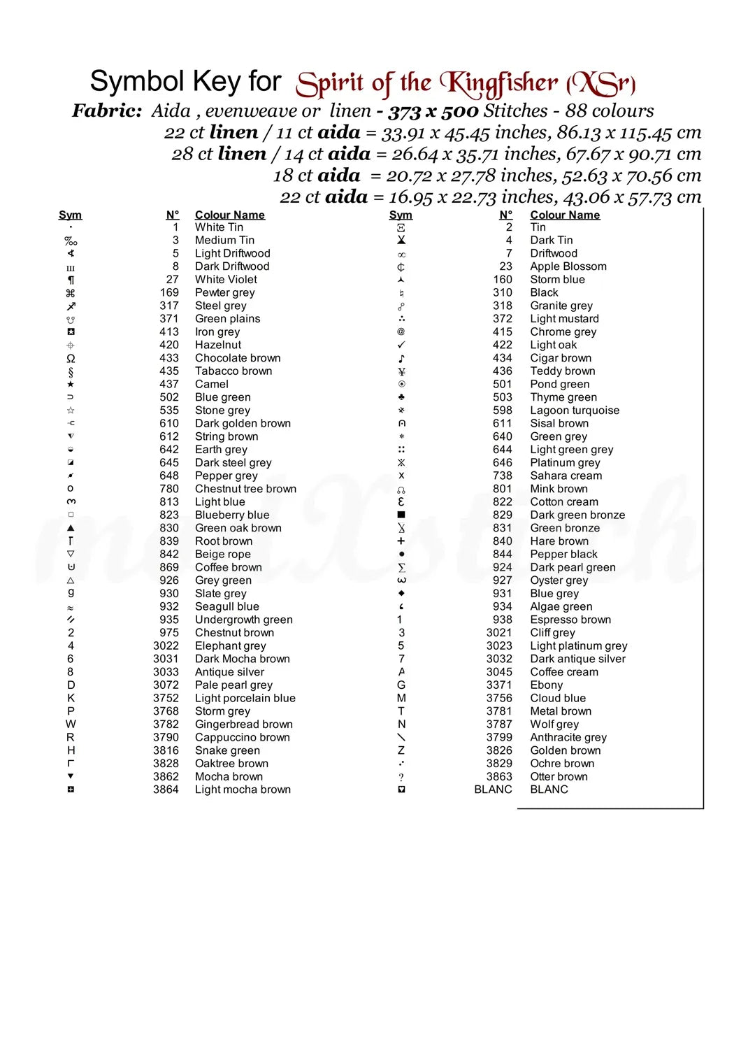 …Thread shopping list for all aida sizes stated