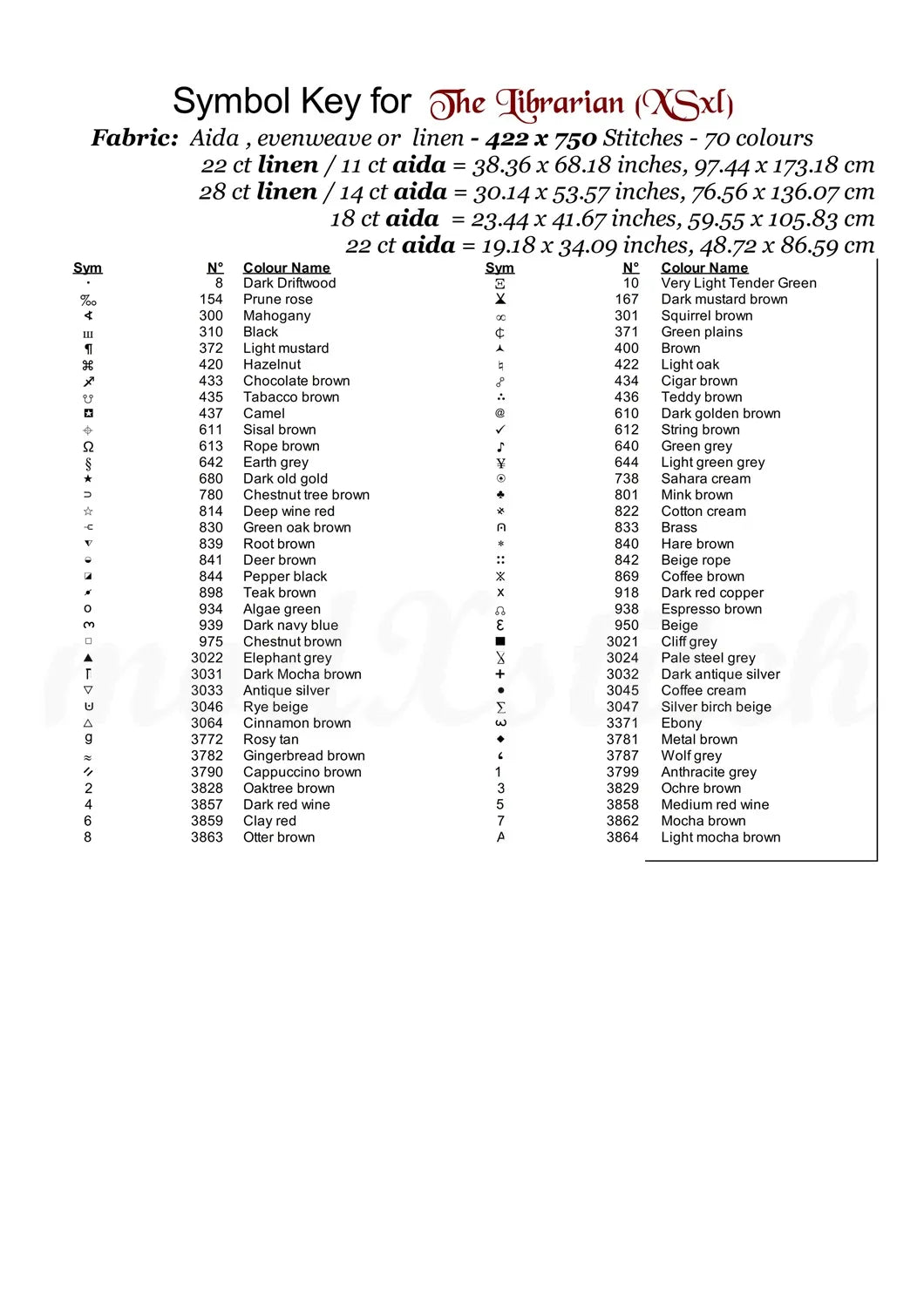 …Thread shopping list for all aida sizes stated
