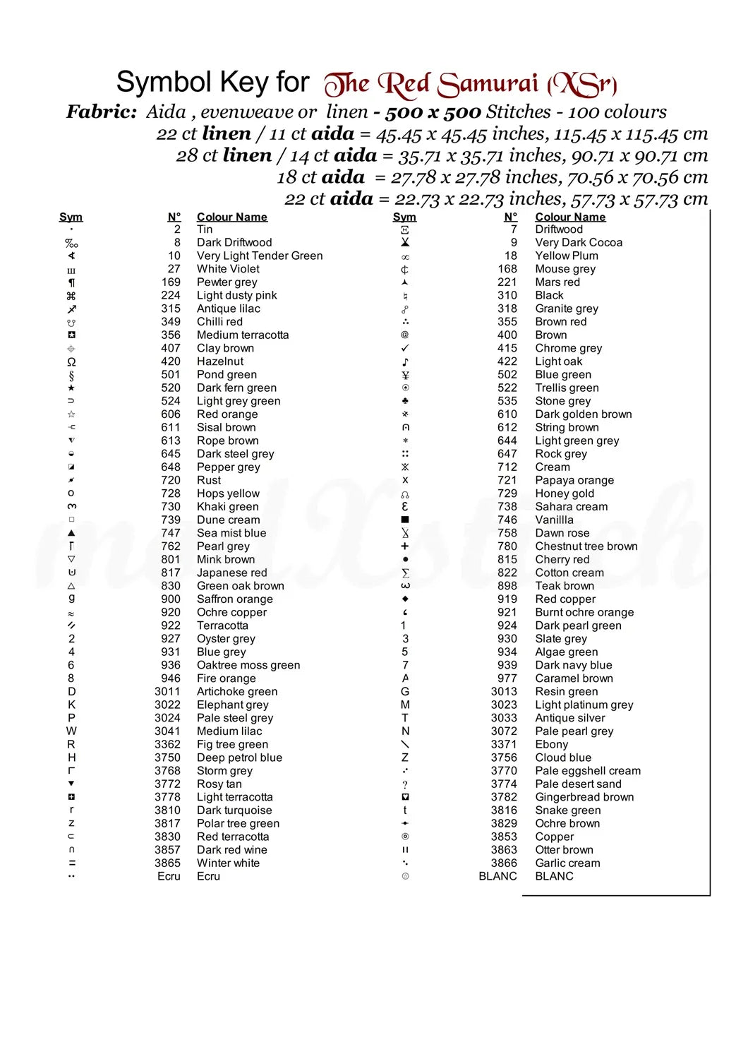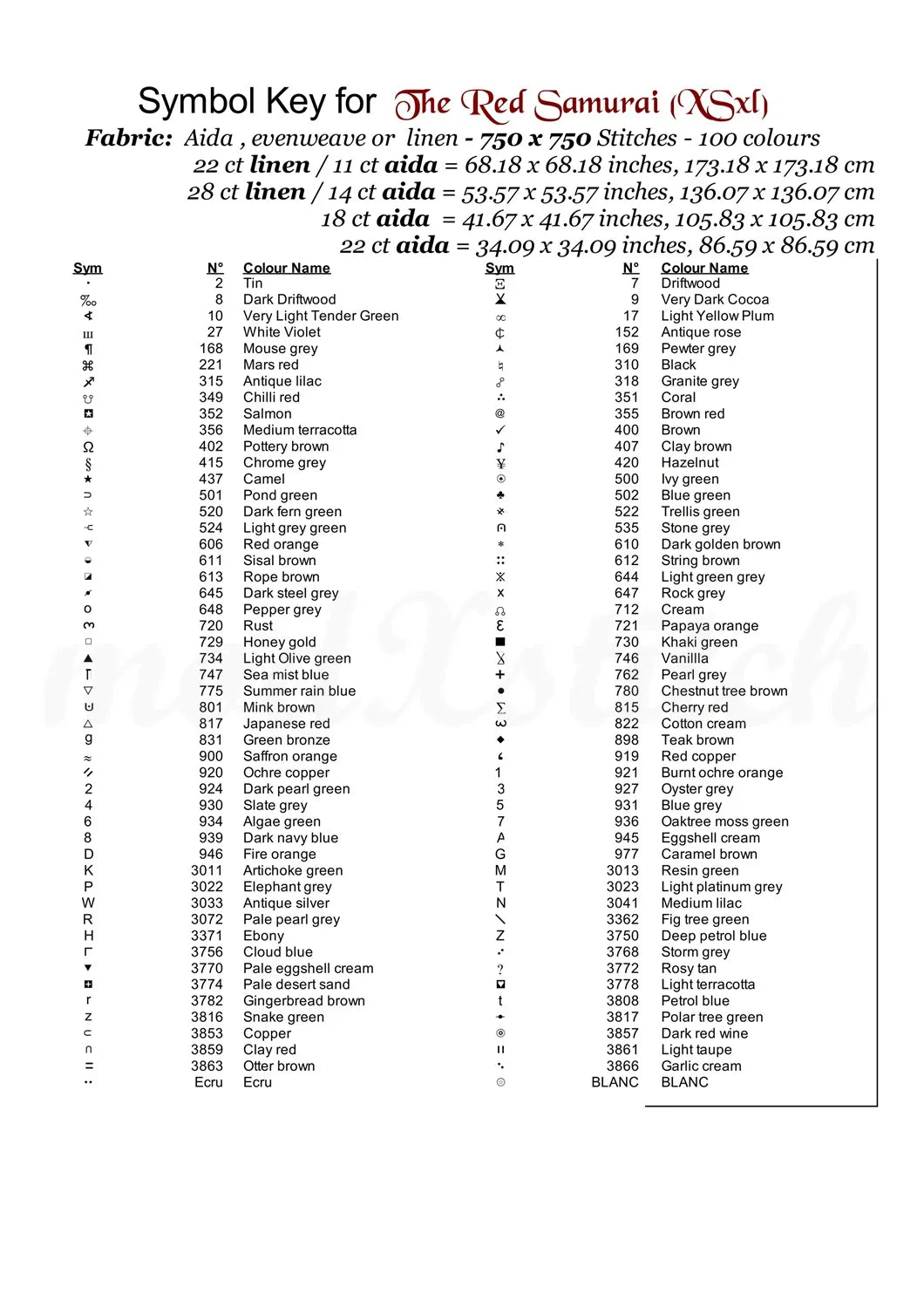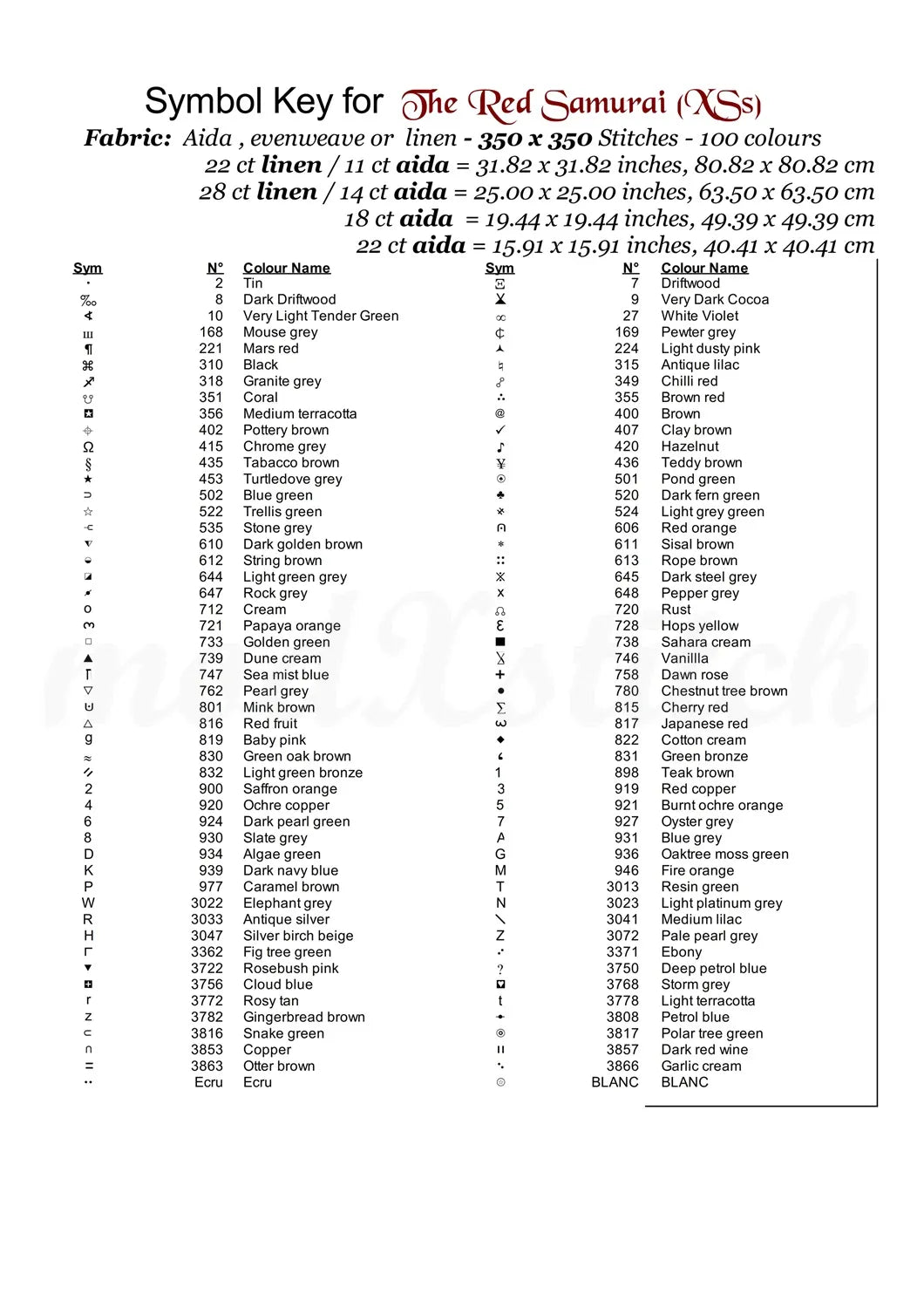 …Thread shopping list for all aida sizes stated
