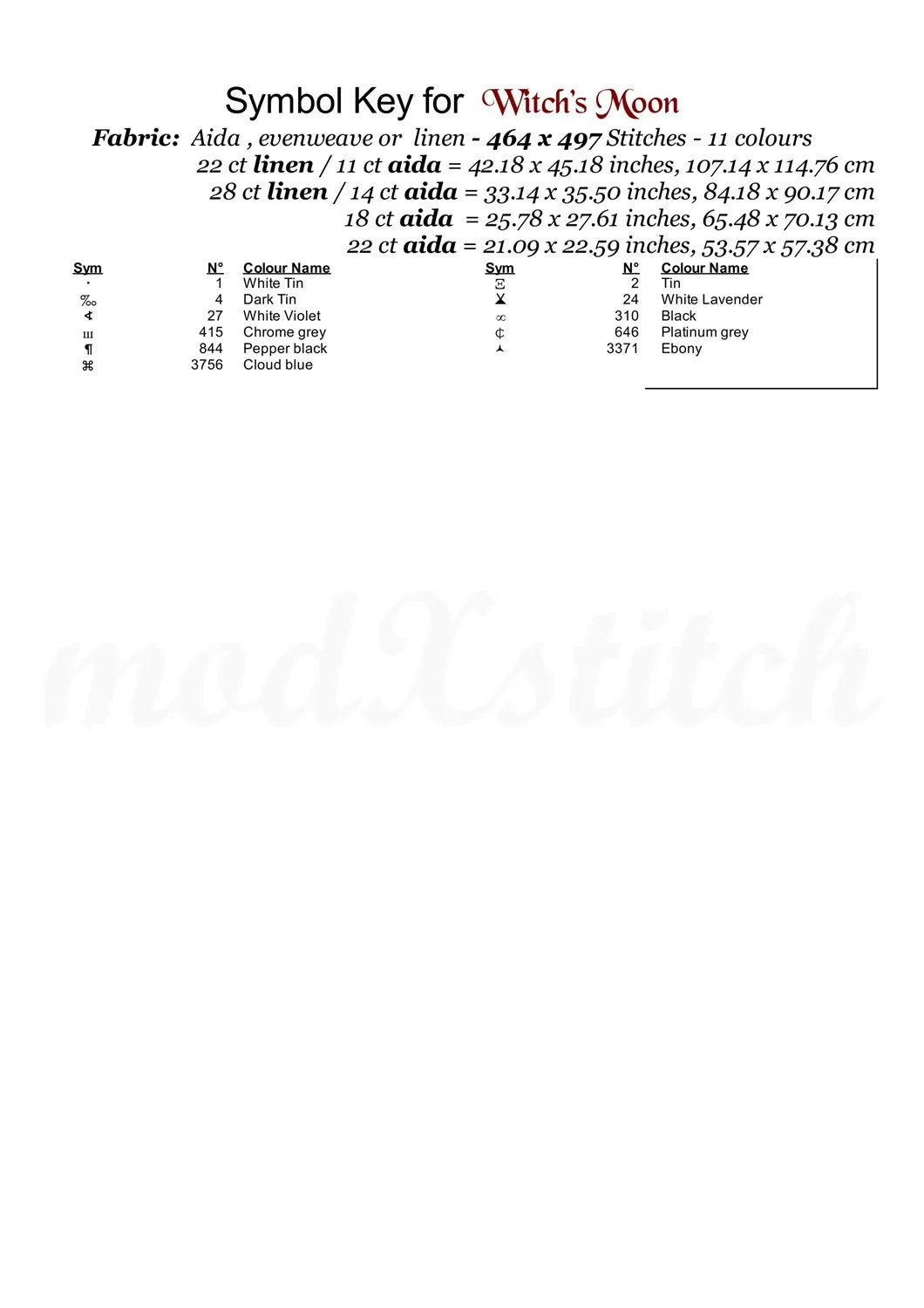 Cross stitch pattern created using DMC colours and CXC colours
